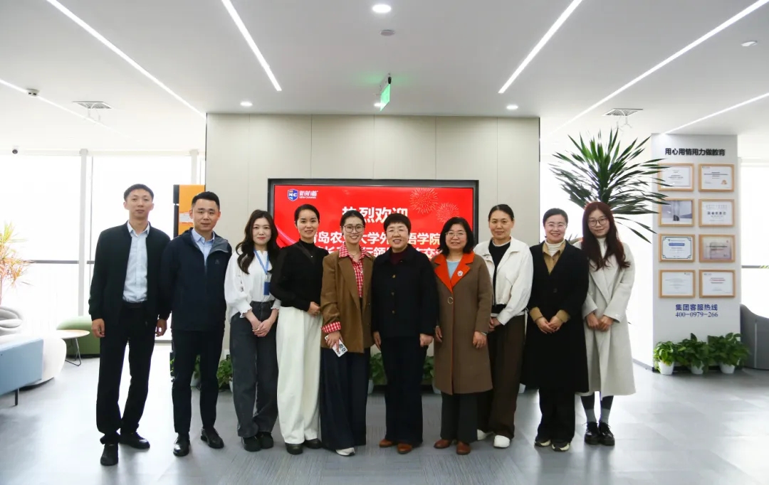 2025年11月11日上午,青岛农业大学外国语学院院长纪卫宁、副院长高秀雪、学院团委书记线郁、MTI中心主任姚雪丽及研究生代表一行莅临新航道青岛学校,开展 “访企拓岗” 专项交流活动。新航道青岛学校副校长文雅丽、人力总监张丽丽、市场总监黄广起、市场经理龚佳祺全程热情接待,双方围绕产教融合、人才培养、实习就业等核心议题深度研讨,达成多项合作共识。