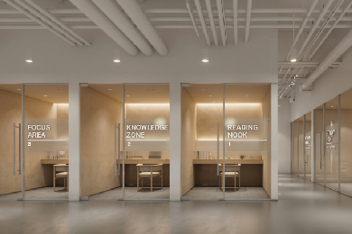 基地多功能分区,有休息室、电话亭、冥想室、自费健身房等休闲设施;会定期邀请学长学姐做经验分享,缓解压力。